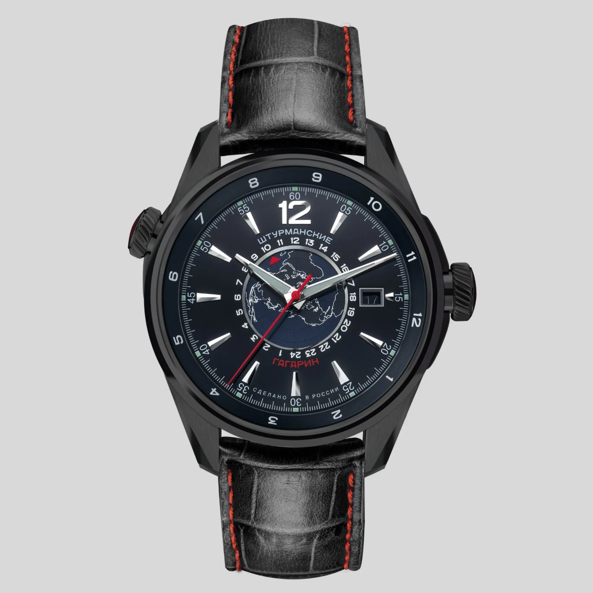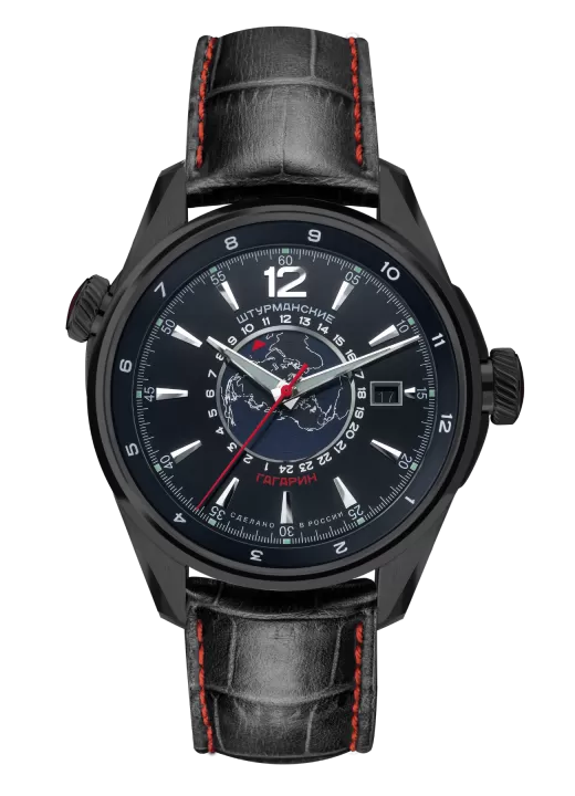 Гагарин День-Ночь – часы с настоящим мужским характером. С ними вы всегда готовы к новым открытиям и подвигам. Под стильным современным корпусом с изображением Земного шара на циферблате скрывается оригинальный советский механизм Восток 2432 – надежный, точный, способный стабильно работать в самых сложных условиях.Достаточно крупные (44 мм) мужские часы со строгим, но выразительным дизайном. Черный циферблат с люминесцентными метками и стрелками защищен прочным минеральным стеклом. Он отображает время в 12- и 24-часовом форматах, текущую дату. Можно настраивать вторую часовую зону. Широкий кожаный ремешок черного цвета с контрастной красной строчкой удобно ложится по руке. Часы легко заводятся, отличаются высокой точностью благодаря использованию проверенного временем советского механического калибра.