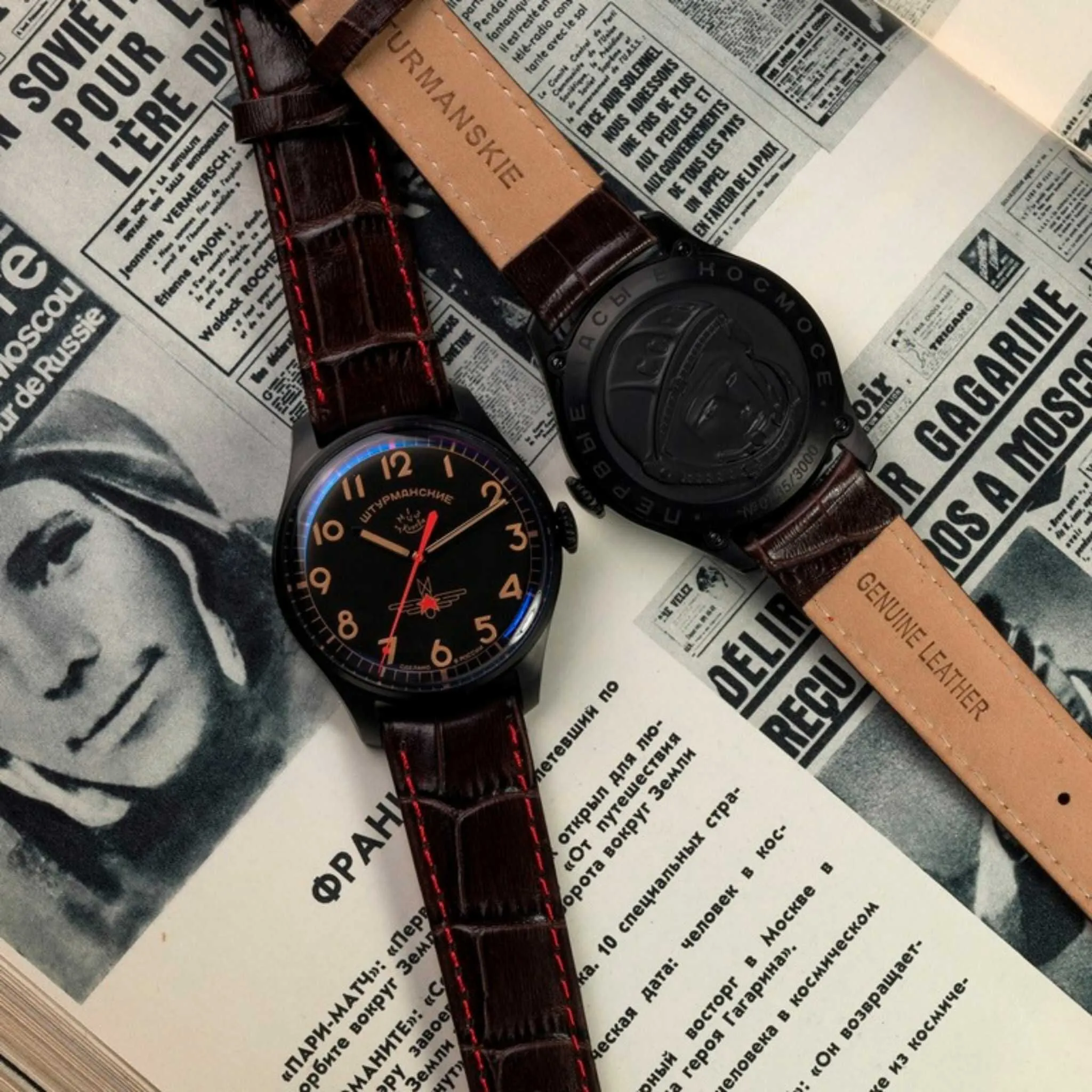 12 апреля 1961 года Штурманские часы сопровождали в первый космический полет Юрия Гагарина. В память об этом знаменательном событии мы представляем лимитированную коллекцию Гагарин Наследие – часы, достойные великого героя.Надежные и функциональные мужские часы с классическим дизайном. Идеальны для повседневной носки. Титановый корпус с черным PVD-напылением долго сохраняет внешний вид даже при интенсивной эксплуатации часов. Лаконичный циферблат не пугает обилием шкал и цифр, при этом отлично читается даже в темноте благодаря люминесцентным стрелкам и индексам. Кожаный черный ремешок с красной строчкой удобно лежит на руке. Работу часов обеспечивает отлично зарекомендовавший себя механизм Полет 2609 с запасом хода на 38 часов. На задней стороне модели расположен барельеф с изображением Юрия Гагарина под прозрачной крышкой.