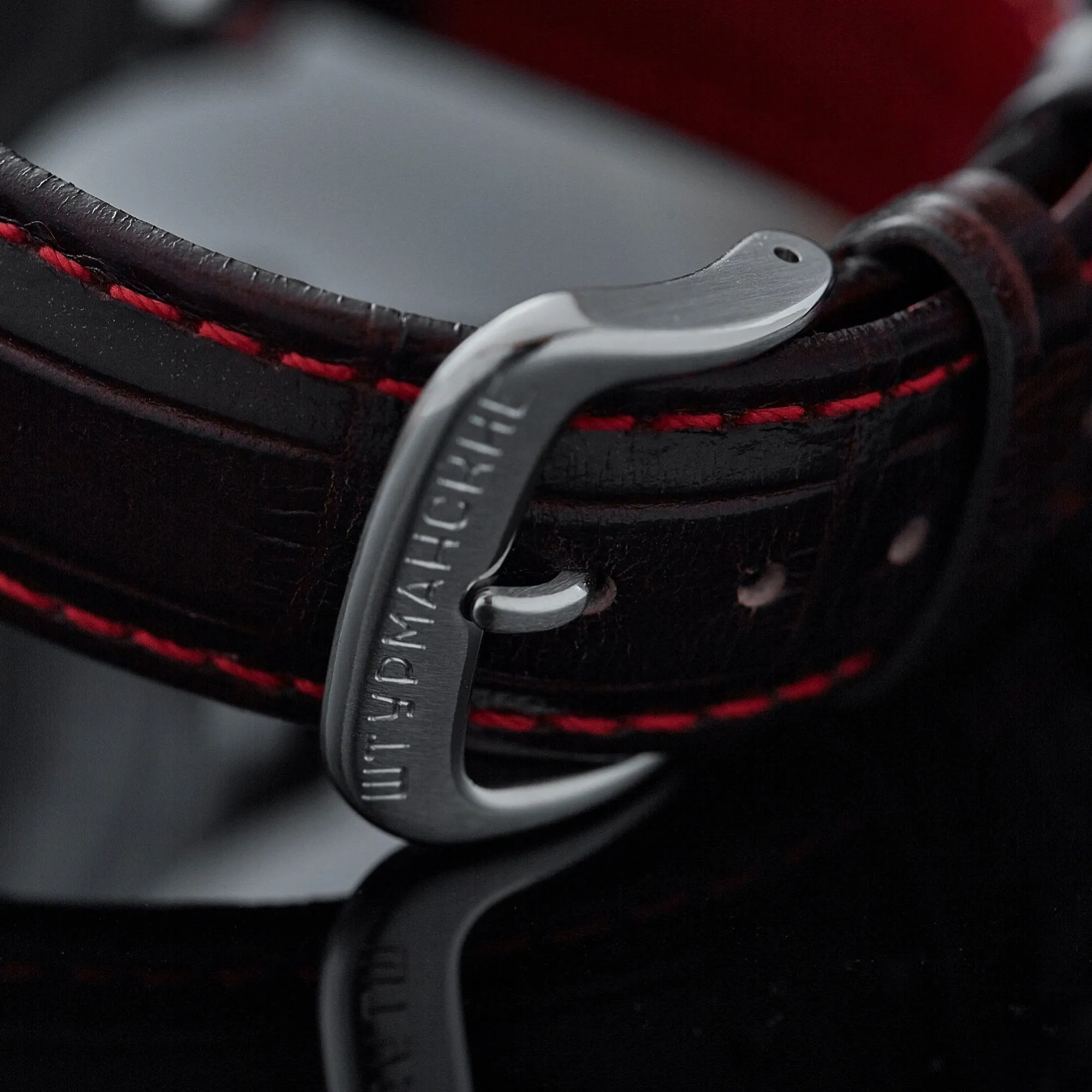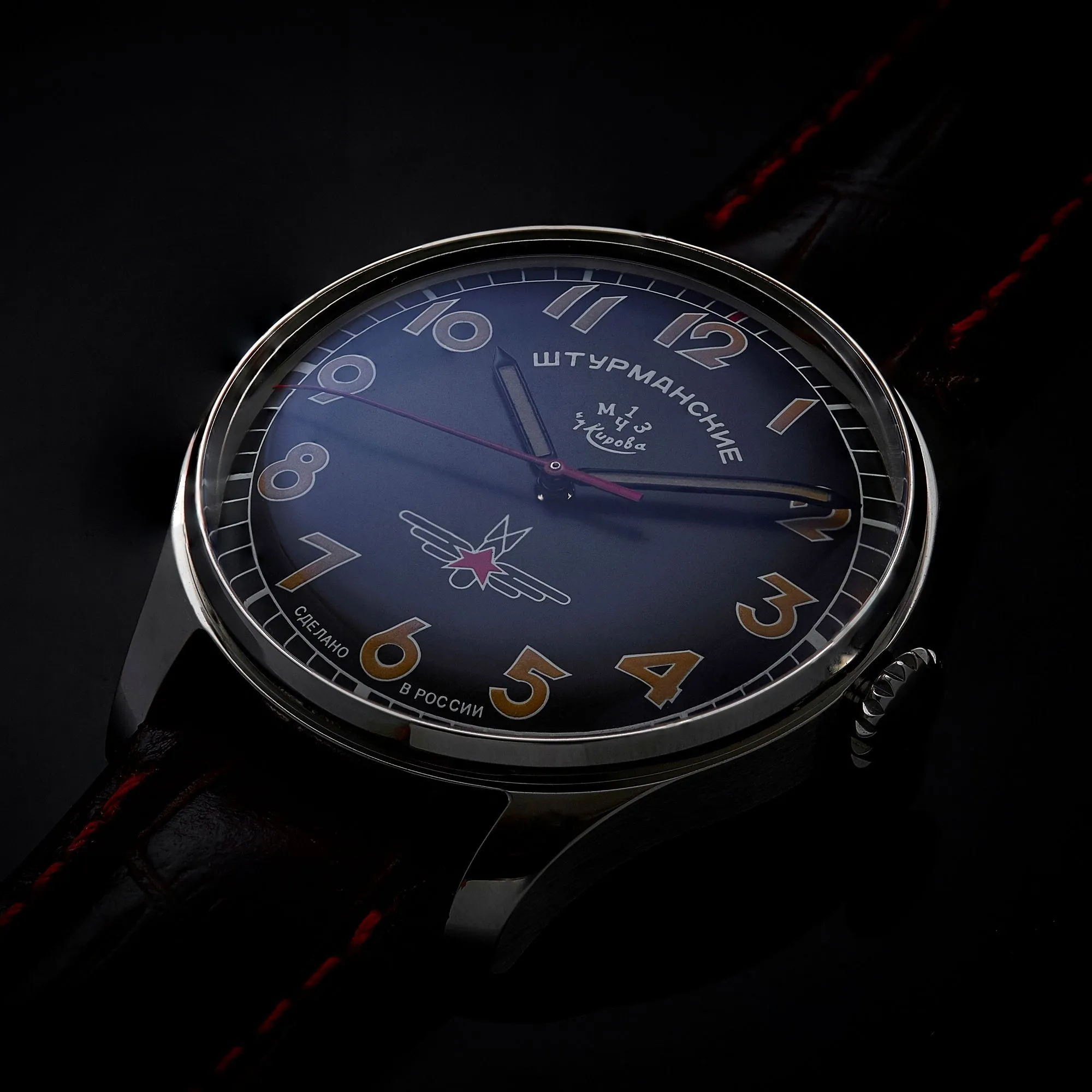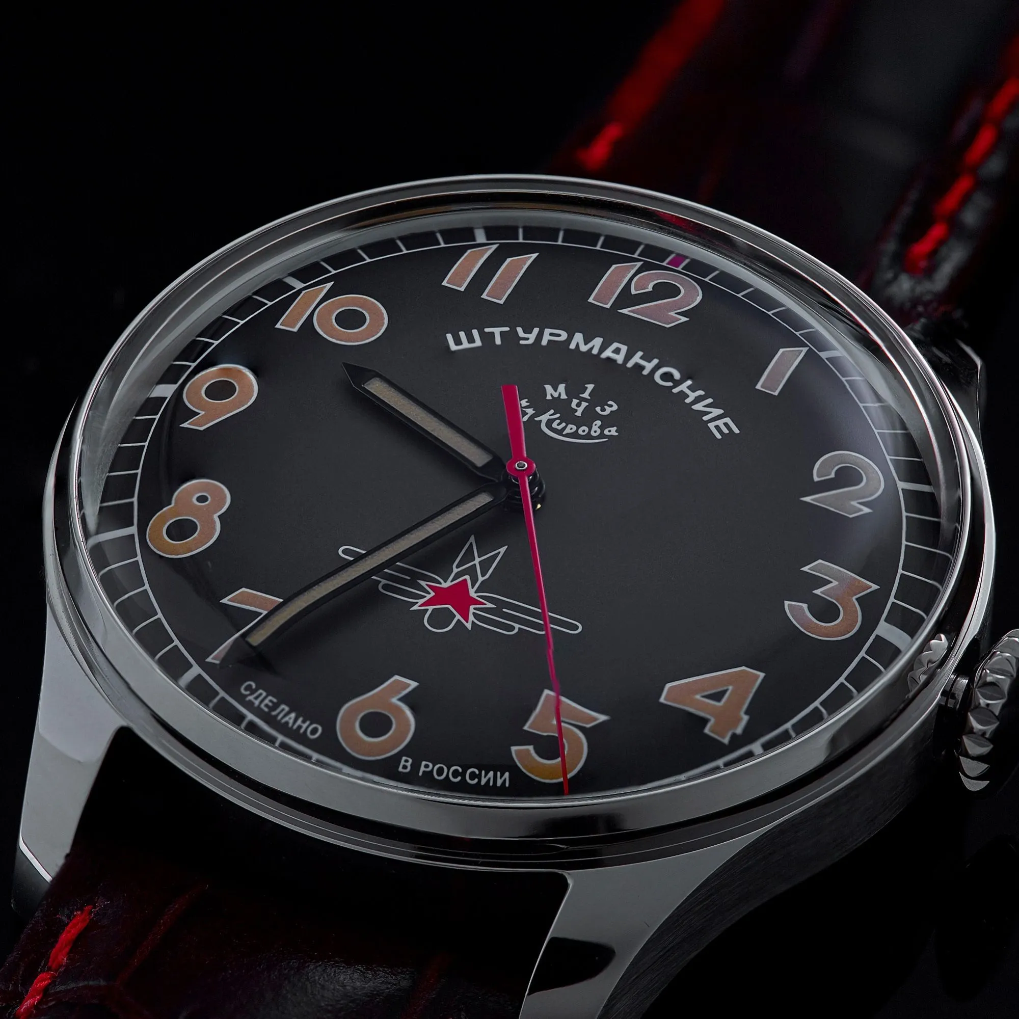 Эта модель отличается ярким дизайном. Красный текстильный ремешок идеально подходит к стальному корпусу и лаконичному белому циферблату под сферическим минеральным стеклом. Сзади помещен барельеф с изображением Юрия Гагарина под прозрачной крышкой. Часы оснащены противоударным механизмом Полет 2609 с автоматическим заводом и большим запасом хода (38 часов). Стрелки и индексы люминесцентные – позволяют определять время в темноте.