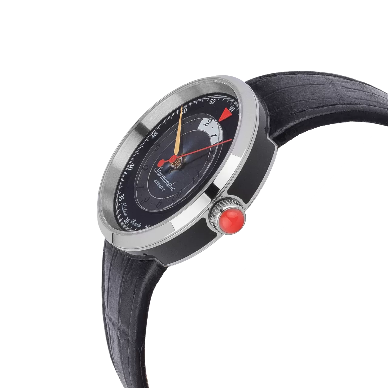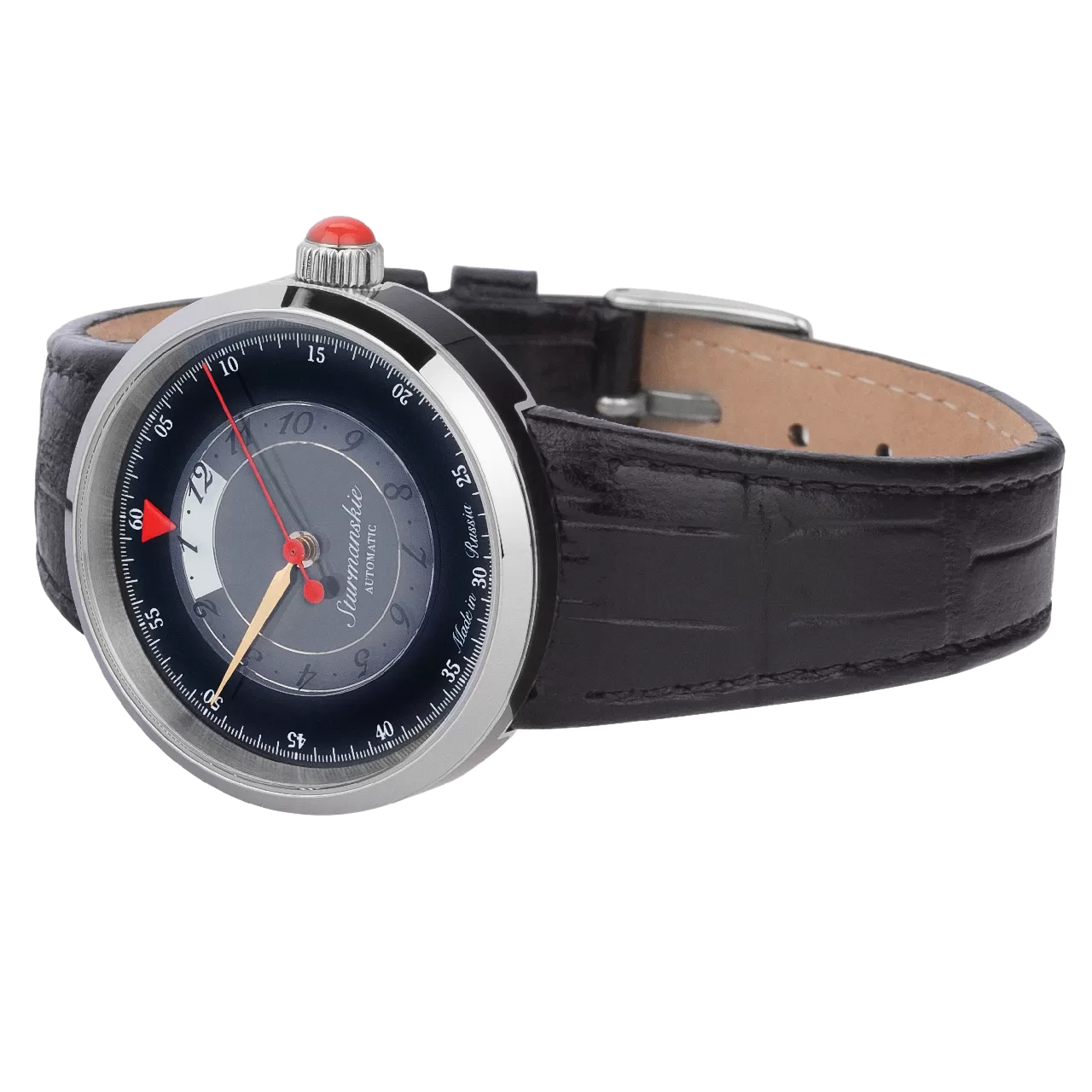 Марс Lady – лаконичные женские часы, дизайн которых выдержан в духе русского авангарда. Они отличаются контрастными цветовыми сочетаниями, отделкой корпуса эмалью ручной работы, отображением часов с помощью яркого треугольника на вращающемся прозрачном диске. Работу часов обеспечивает японский механический калибр Miyota 9015 с автоматическим подзаводом.Лаконичные и в то же время выразительные женские часы. Черный циферблат и кожаный ремешок дополнены яркими красными акцентами: строчкой, секундной стрелкой, треугольником для отображения часов. Сапфировое стекло, которое закрывает циферблат, отличается высокой прочностью, устойчивостью к появлению царапин и потертостей. Часы не требуют частого подзавода – запас хода у них 42 часа.