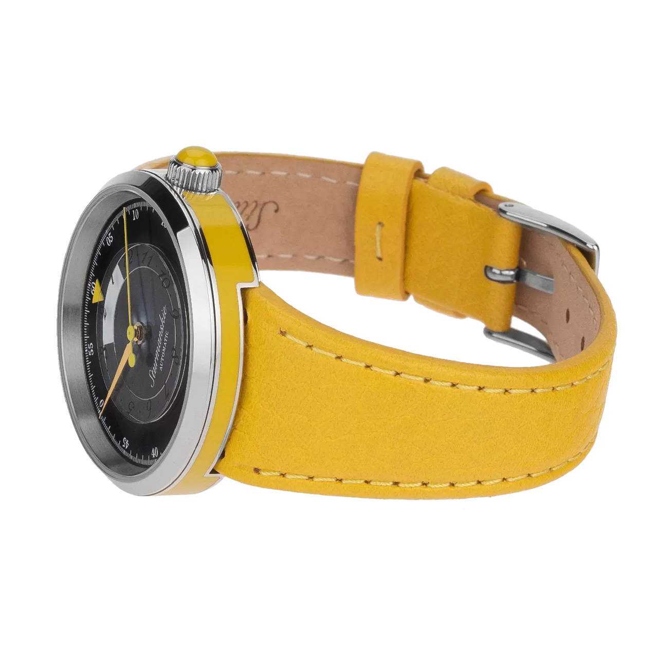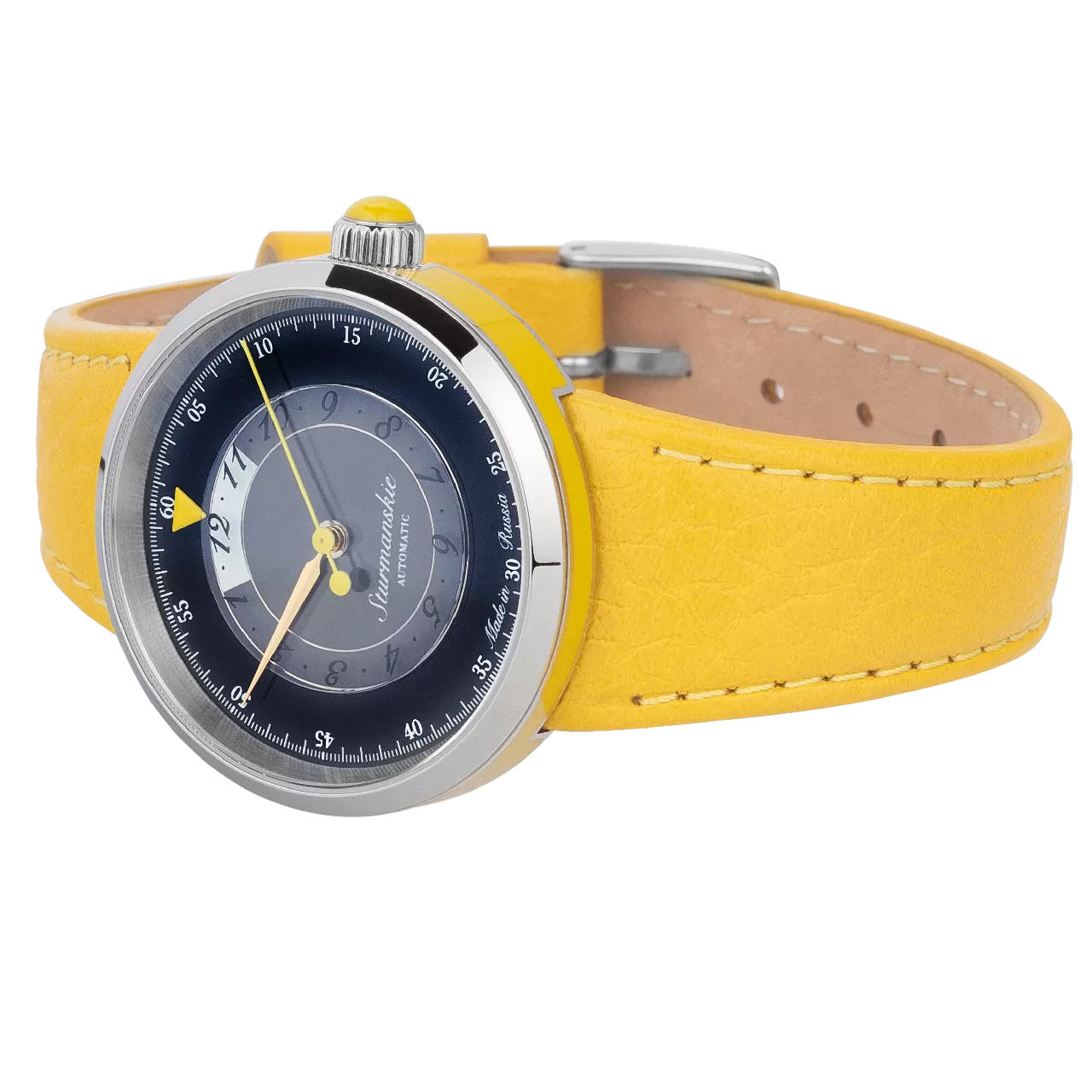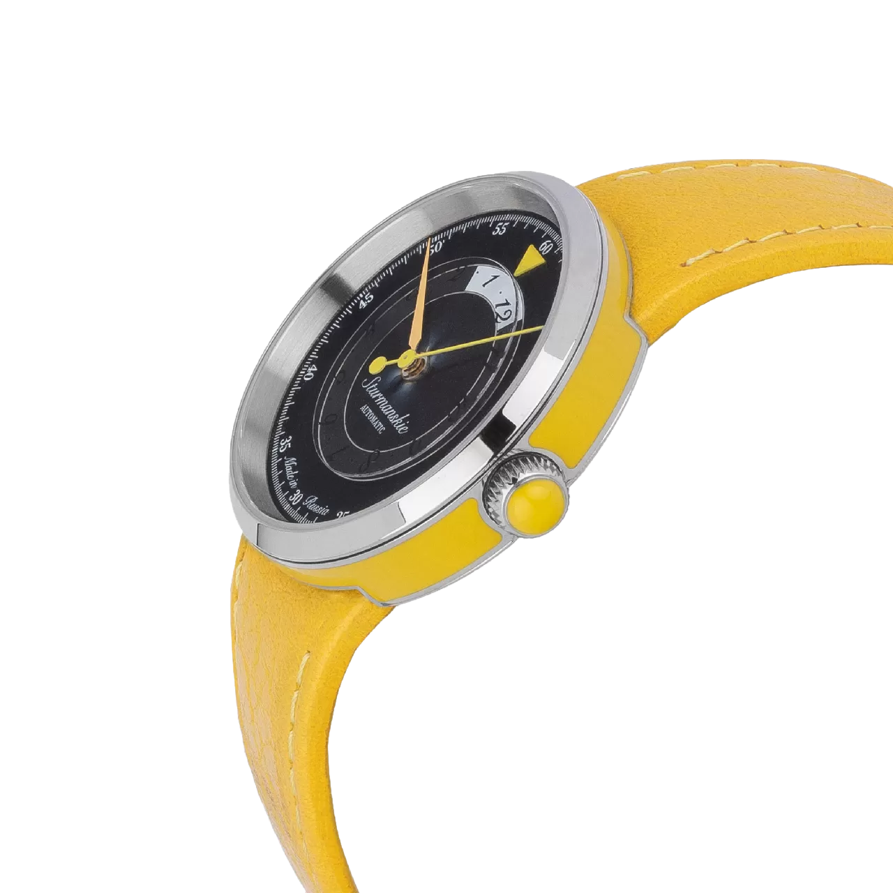 Марс Lady – лаконичные женские часы, дизайн которых выдержан в духе русского авангарда. Они отличаются контрастными цветовыми сочетаниями, отделкой корпуса эмалью ручной работы, отображением часов с помощью яркого треугольника на вращающемся прозрачном диске. Работу часов обеспечивает японский механический калибр Miyota 9015 с автоматическим подзаводом.Эта модель создана для тех, кто любит нестандартные решения. Сочетание черного и ярко-желтого смотрится свежо и интересно, придает часам уникальный колорит и яркую индивидуальность. Циферблат закрыт прочным сапфировым стеклом. Надежный механизм отличается запасом хода 42 часа. В комплекте сразу два кожаных ремешка, чтобы часы всегда подходили к вашему образу – сдержанный черный и выразительный желтый.