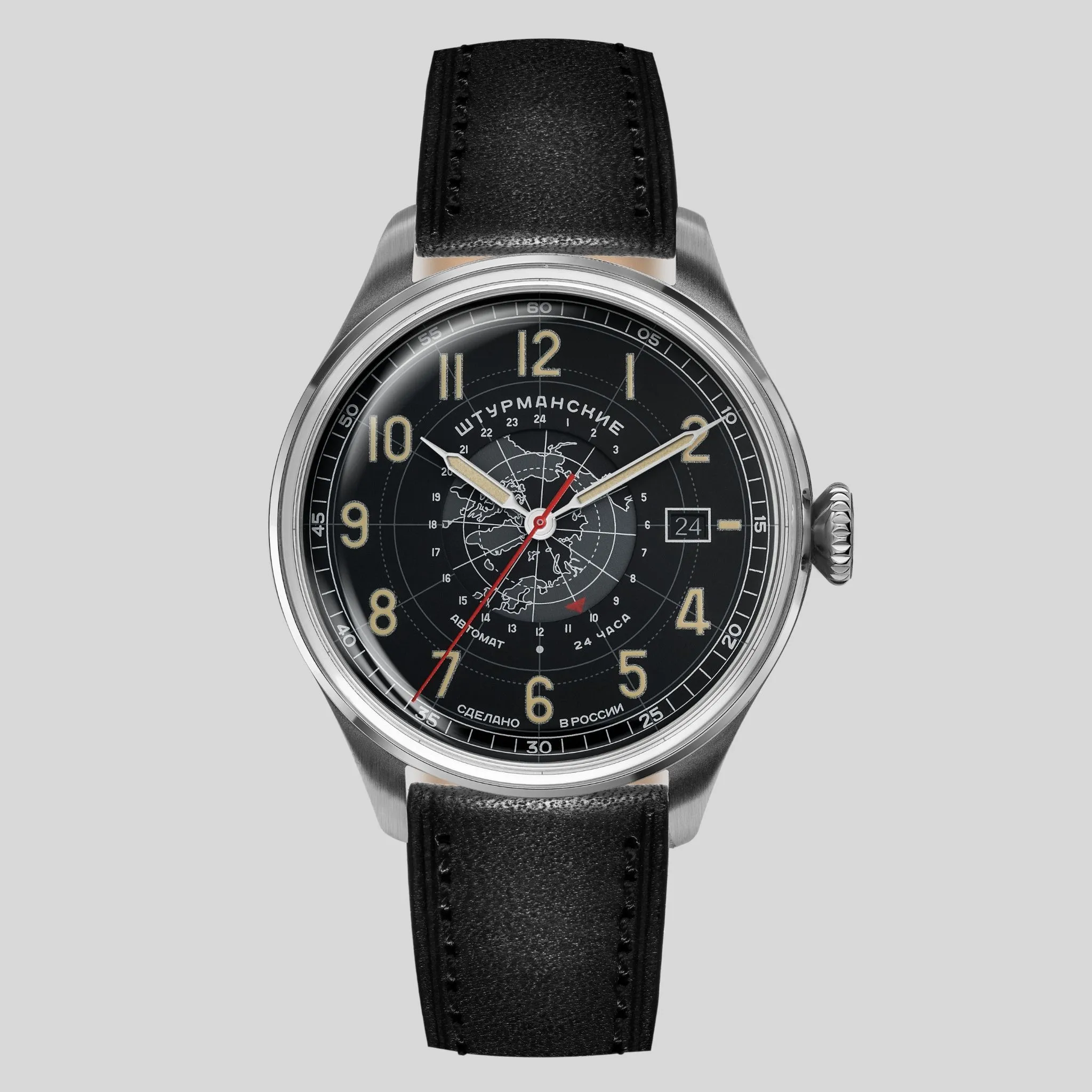 Часы Арктика День-Ночь не подведут нигде и никогда. Не случайно именно их выбирают для самых сложных экспедиций полярники и путешественники. Люминесцентные индексы отлично видны даже в темноте, а две временные шкалы позволяют жить сразу в двух часовых поясах.Удобные в носке, красивые часы с большим набором опций. Они показывают не только время, но и текущую дату. Кожаный ремешок надежно и комфортно лежит на руке. Выполненные в черно-стальной гамме часы не выглядят скучно благодаря стильному акценту – красной секундной стрелке. Корпус из нержавеющей стали скрывает проверенный временем механический калибр – Восток 2432 с автоматическим заводом и запасом хода 33 часа. Он демонстрирует высокую точность, защищен от ударов. Циферблат закрыт акриловым стеклом – прочным, но легким.