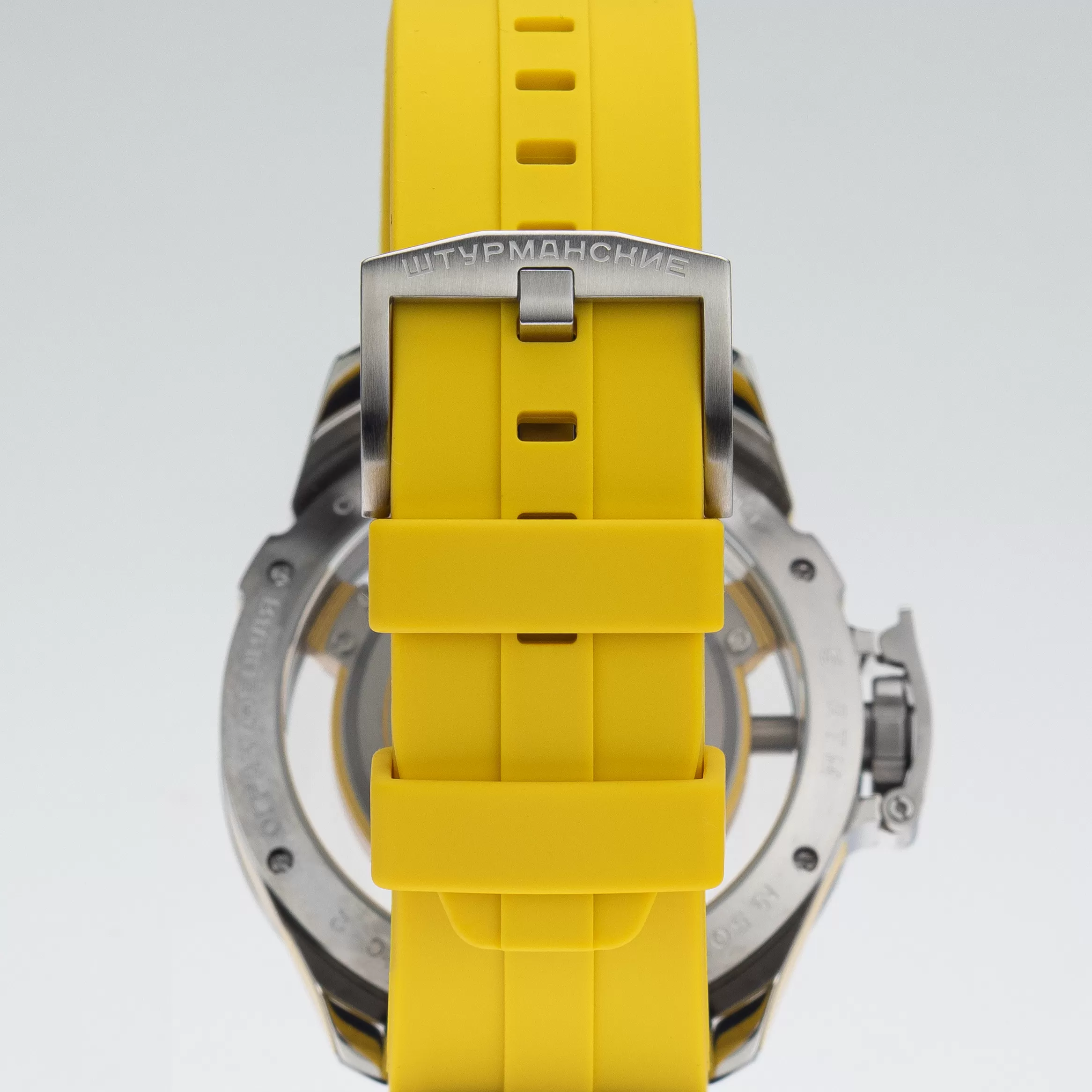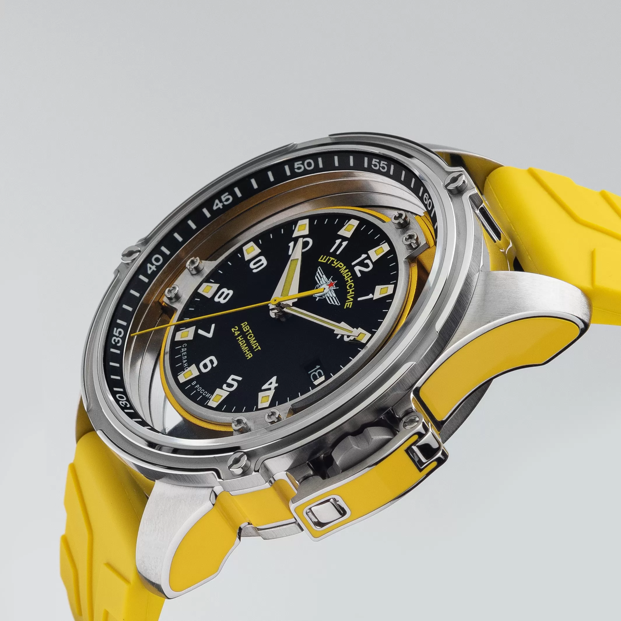 Лимитированная линейка Марс 2 – часы будущего, которые отличаются не только футуристическим ярким дизайном, но и потрясающей функциональностью. Они защищены от влаги и вибрации, оснащены надежным японским калибром NH35 Seiko с автоматическим подзаводом и запасом хода 41 час.Модель выполнена в модном черном цвете с яркими желтыми акцентами. Циферблат отображает время и текущую дату, причем индексы и стрелки покрыты люминесцентной краской и отлично видны в темноте. Боковые поверхности корпуса покрыты эмалью ручной работы. Заводная головка дополнительно защищена от попадания влаги. Амортизаторы между корпусом и механизмом защищают калибр от вибрации, а сапфировое стекло надежно закрывает циферблат. Силиконовый ремешок удобно лежит на руке и долго сохраняет идеальный внешний вид.